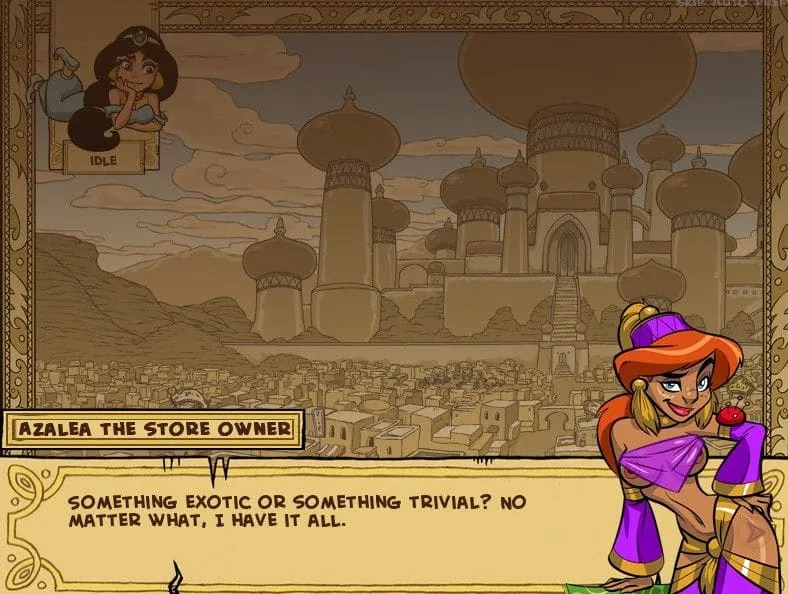 Focus on balancing Jasmine’s stats. Training exercises cost energy but build obedience and can unlock outfit changes. Sending her to the palace can affect purity and discipline differently than market work. It’s a juggling act. The status screen is your best friend—let it guide your decisions.