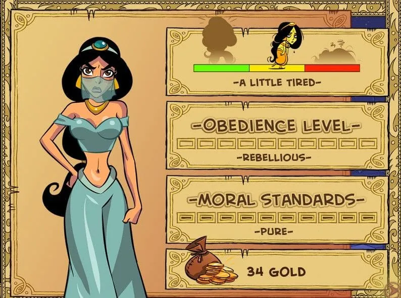 Okay, let’s get practical. After you install and start a new game, you’ll find yourself in your modest house with Princess Jasmine. The first week is critical. Here’s the golden rule I learned the hard way: Always check the status screen first thing every morning. This screen shows her Energy, Purity, and Discipline—the holy trinity of stats that govern everything.